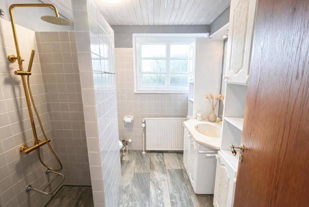 Et sommerhus der kombinerer naturens ro med nem adgang til campingpladsens liv. Fra haven har I den vildeste udsigt over fjorden og heden — og spabadet er selvfølgelig inkluderet i prisen. Huset er 155 kvm med 4 soveværelser og 1 badeværelse, og der er plads til op til 8 personer. Campingpladsen ligger 750 meter væk, og turen dertil er en fornøjelse i sig selv — I kan gå, cykle eller køre igennem skoven eller ad cykelstien. Det er nemt at smutte i vandland og på legepladsen med børnene, og som gæst har I selvfølgelig fri adgang til campingpladsens vandland, legeplads og butik.